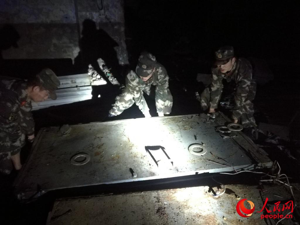 16日,武警宜宾支队救援力量抵达兴文震中周家镇展开救援。