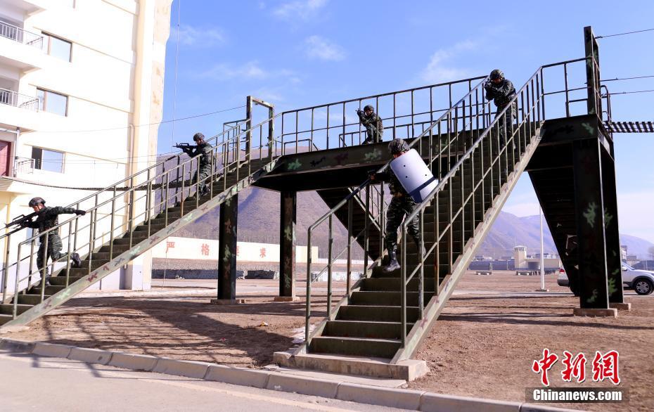 12月19日,特战队员进行突击行动。当日下午,在武警青海总队某支队营区内,特战队开展了一次城市反劫持演练。演练结束后,特战队中的狙击手依旧进行着用线穿大米,垒弹壳等日常训练,进一步提高处置突发性事件的射击精准度。中新社记者 马铭言 摄