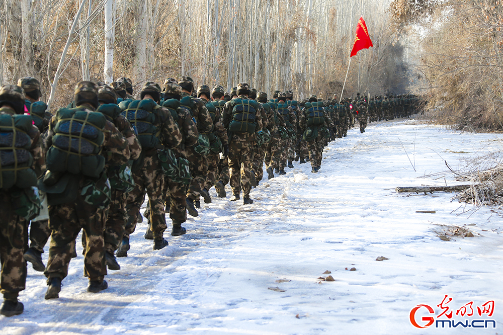 驻南疆武警某部新兵野营拉练 徒步95公里一路破冰踏雪奔袭“处突”