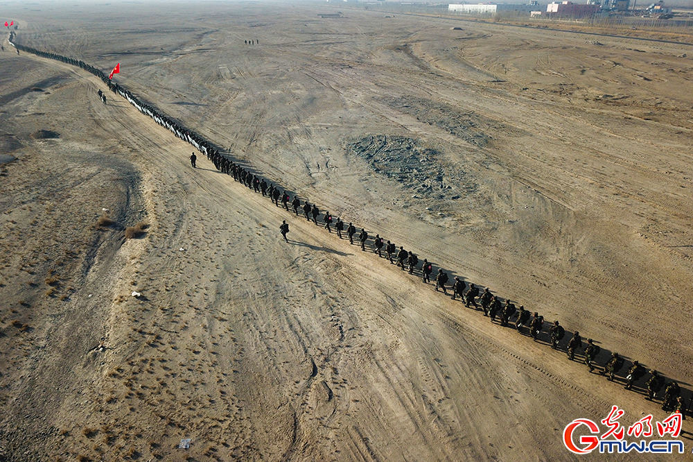 驻南疆武警某部新兵野营拉练 徒步95公里一路破冰踏雪奔袭“处突”