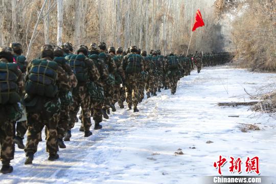 驻南疆武警某部新兵野营拉练 徒步95公里一路破冰踏雪奔袭“处突”