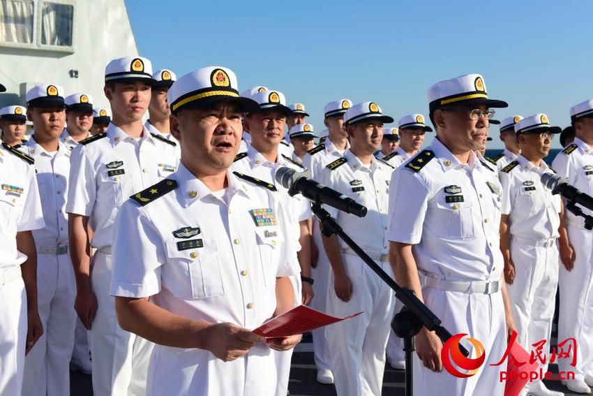 编队许海华指挥员在纪念章佩戴仪式上致辞。来永雷摄