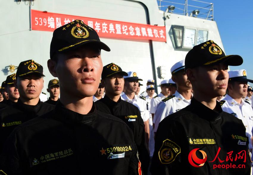 海军第三十批护航编队在亚丁湾举行护航十周年庆典暨纪念章佩戴仪式