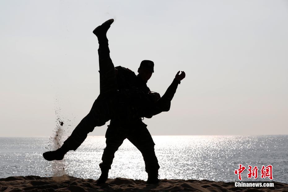 近日,参加武警福建总队福建莆田片区第四季度“魔鬼周”训练的武警官兵,来到莆田市秀屿区某海滩开展极限大练兵训练。据悉,此次“魔鬼周”训练充分结合福建沿海地域特点,设置了贴近实战的海滩训练内容。刘欢 摄