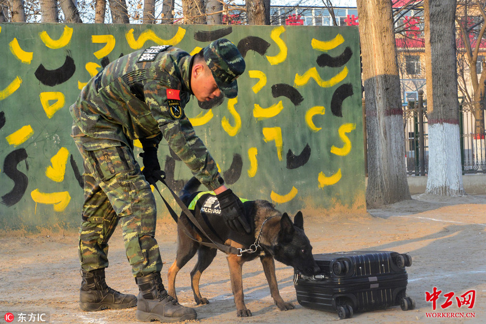 看警犬是怎样练成的 训导员指挥狗狗配合默契