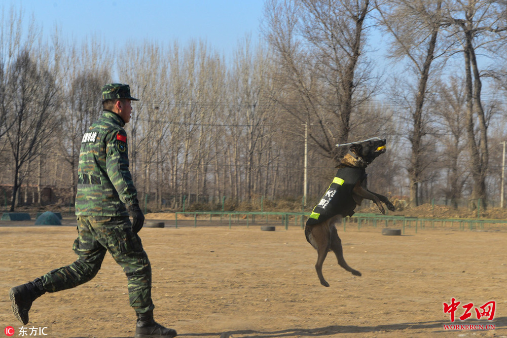 看警犬是怎样练成的 训导员指挥狗狗配合默契