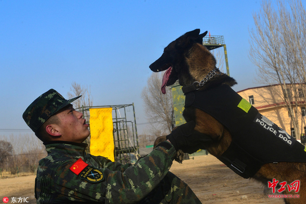 人民网山西12月26日电 近日,在武警山西总队忻州支队某中队训练场,警犬“心情”在训导员郝忠强的指挥下,完成了通过障碍、物品鉴别、行李箱搜爆、解救人质等课目训练。