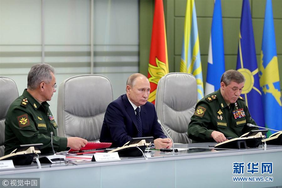 当地时间2018年12月26日,俄罗斯莫斯科,俄罗斯总统普京访问国防控制中心,观看新型武器“先锋”高超音速助推滑翔导弹的测试。(图片来源:视觉中国)