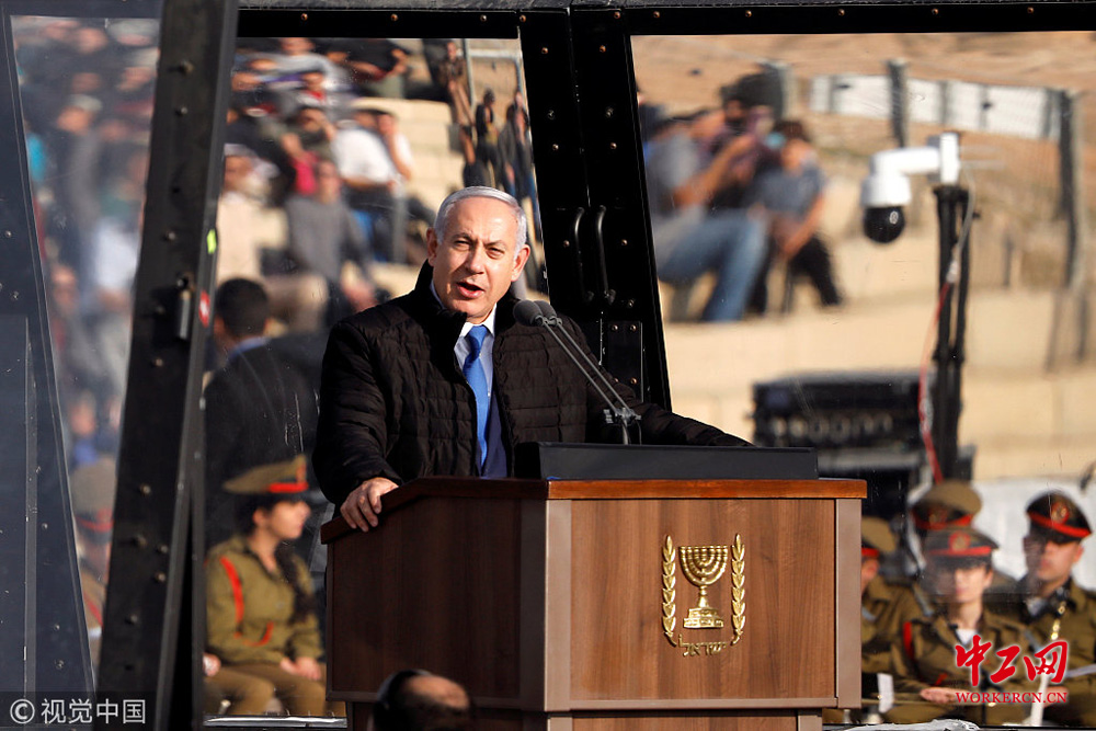 当地时间2018年12月26日,以色列内盖夫荒漠,哈特泽里姆空军基地举行以色列空军飞行员毕业典礼,以色列总理内塔尼亚胡出席。