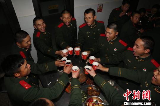 12月28日,新兵连战士聚餐。 曾勇 摄