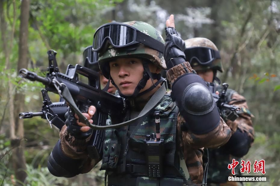 参训官兵进行山林捕歼训练。瞿宏伦 摄