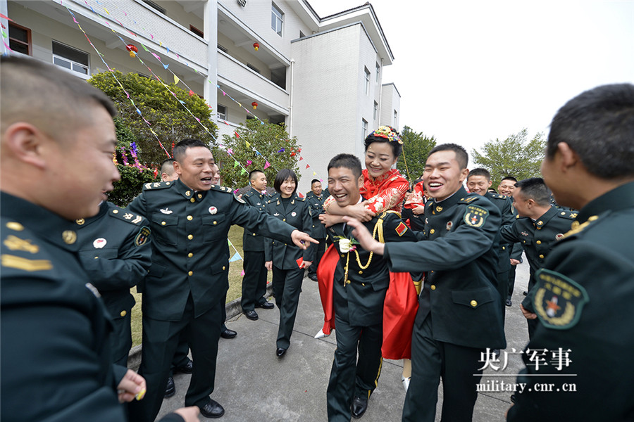 战友们来“抢”亲了。