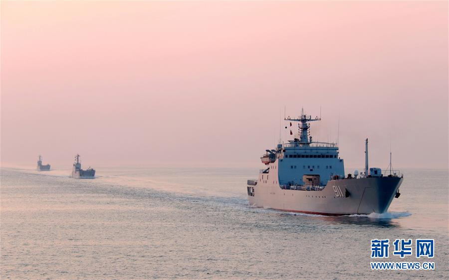 北部战区海军某登陆舰大队组织编队运动(1月5日摄)。新华社发(袁波 摄)