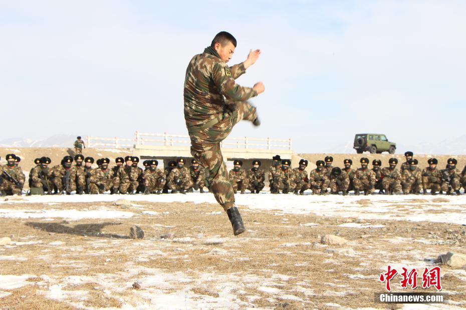 1月6日,武警青海总队机动第一支队进行长达30公里的徒步行军,以实际行动践行全军开训动员令。他们身背40公斤重的装备,克服冬日高寒缺氧的恶劣条件,穿越高原复杂地形,脚上磨出血泡,也无一人主动要求退出,叫响了“高原铁拳打胜仗”的口号。图为行军途中的文艺表演激发战士斗志。图/王冬 文/李旭东