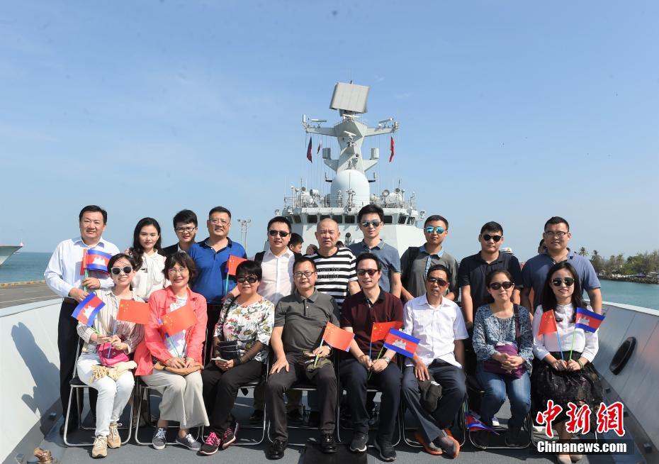 1月9日,中国海军第三十批护航编队抵达柬埔寨西哈努克省西哈努克码头,对该省进行为期4天的友好访问。这是中国海军舰艇编队近年来第4次访问柬埔寨。编队由导弹护卫舰芜湖舰、邯郸舰和综合补给舰东平湖舰组成。图为登舰参观的民众合影。中新社记者 黄耀辉 摄