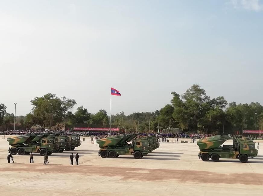 老挝建军节阅兵彩排:放眼望去一整排中国火箭炮