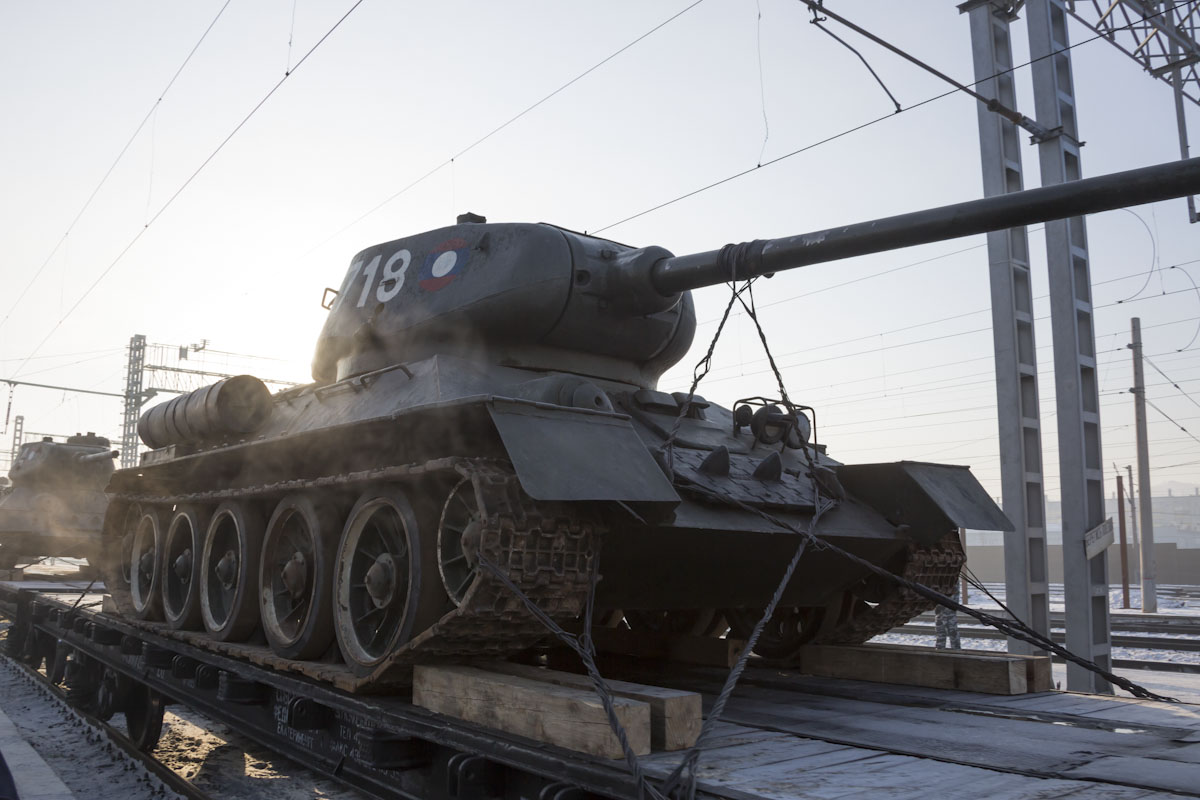30辆现役T-34坦克返俄 民众穿苏联红军军服迎接