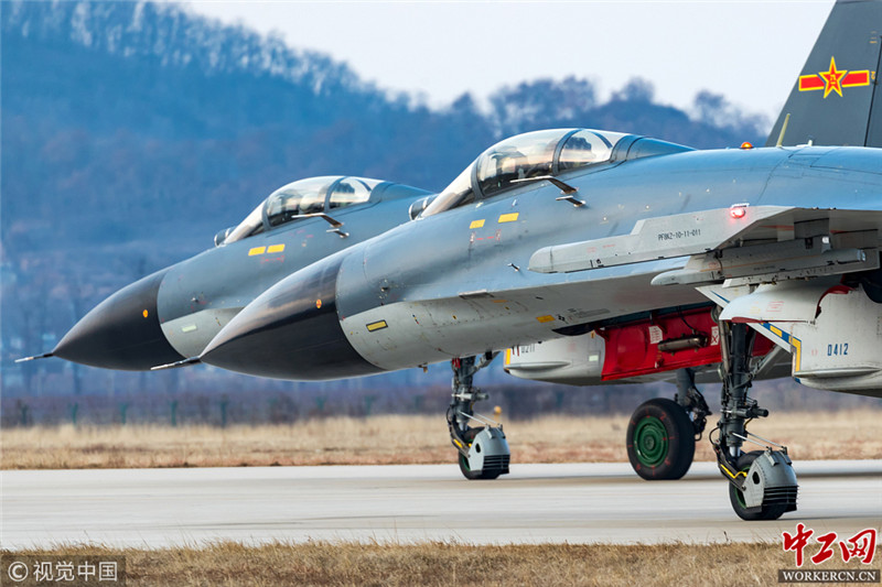 2019年1月3日,战机起飞前暖车。