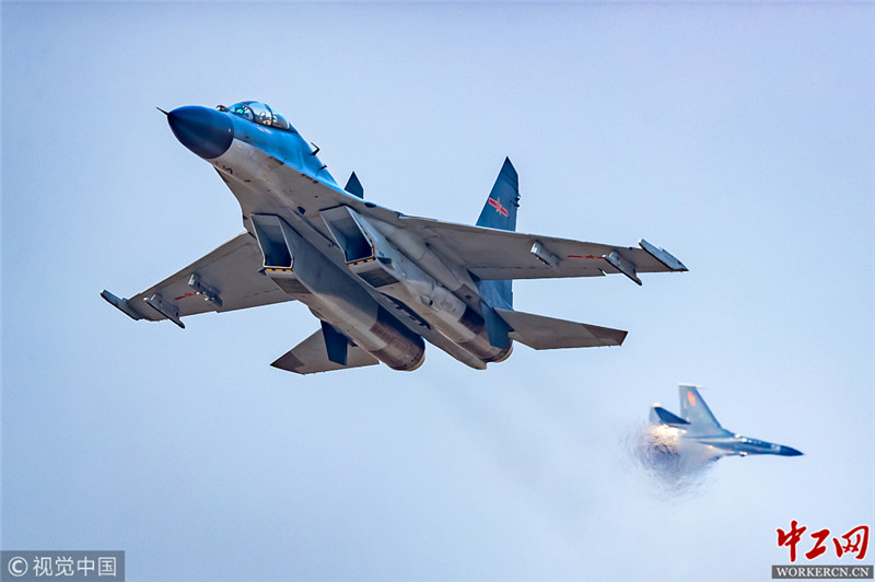 2019年1月3日,飞机员驾驶战机进行高强度训练。
