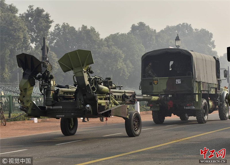 当地时间2019年1月17日,印度阿姆利则,印度士兵参加共和日阅兵彩排。