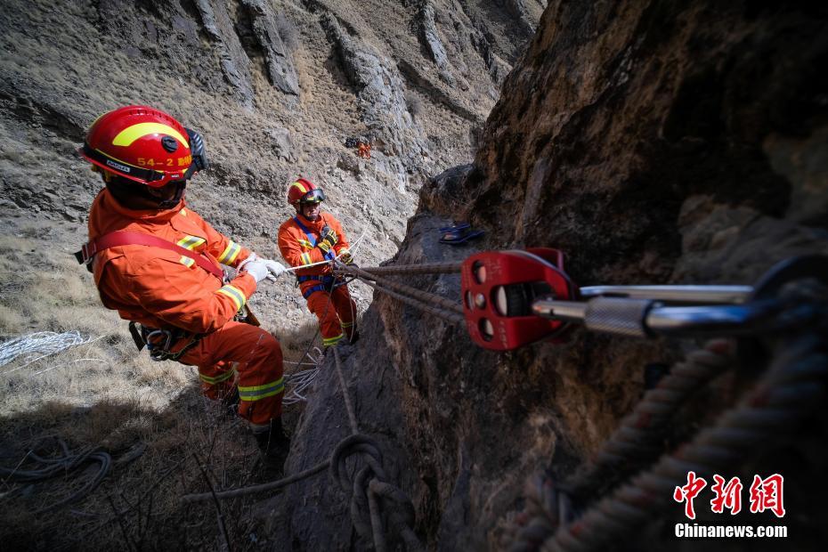 1月17日,西藏消防总队在培训基地进行高山救援实战演练。演练现场,以总队培训基地后山为背景,进行峡谷救援、T型救助、高空横渡V型救援、路绳搭建、单兵上升与下降、悬崖担架陪护上升与下降等多项目的演练。据悉,此次演练是国家高山救援拉萨大队组建以来,西藏消防总队开展的首次高山救援实战演练,共投入8车63人、专业救援装备145余类。图为消防员进行路绳搭建。何蓬磊 摄