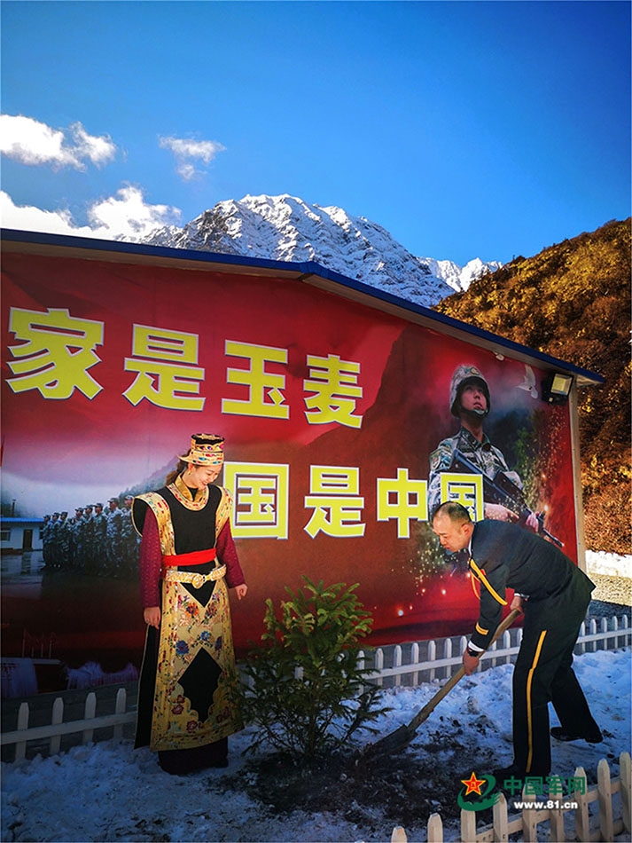 张锦源和王梅在营院共同种下一棵见证他们爱情的云杉树。