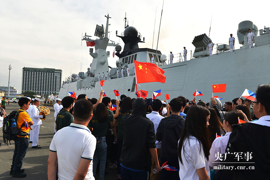 驻菲华人华侨热情欢送编队官兵。张海龙摄