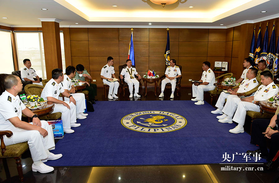 编队指挥员许海华一行拜会菲海军司令。来永雷摄