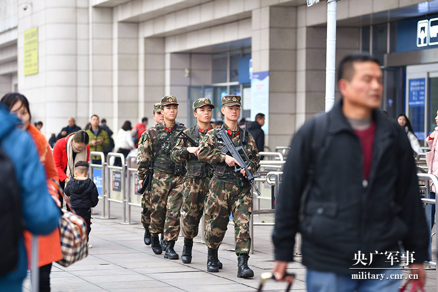 1月21日,全国各地拉开了2019春运大幕。为确保旅客能够安全顺利踏上返乡之路,春运首日,武警重庆总队执勤第二支队派出巡逻官兵,在重庆机场、重庆西站、重庆北站、菜园坝汽车站等重要交通枢纽,采取定点与移动、徒步巡逻与乘车巡逻等方法,与公安部门密切协同,形成全方位、多层次的社会治安防范网,对巡区重点目标,要害部位进行重点加强,并组织执勤官兵进行战法演练,提升反恐作战能力,确保遇有突发情况能迅速到位,高效处置。(王小飞、唐志勇、黄叶春摄影报道)