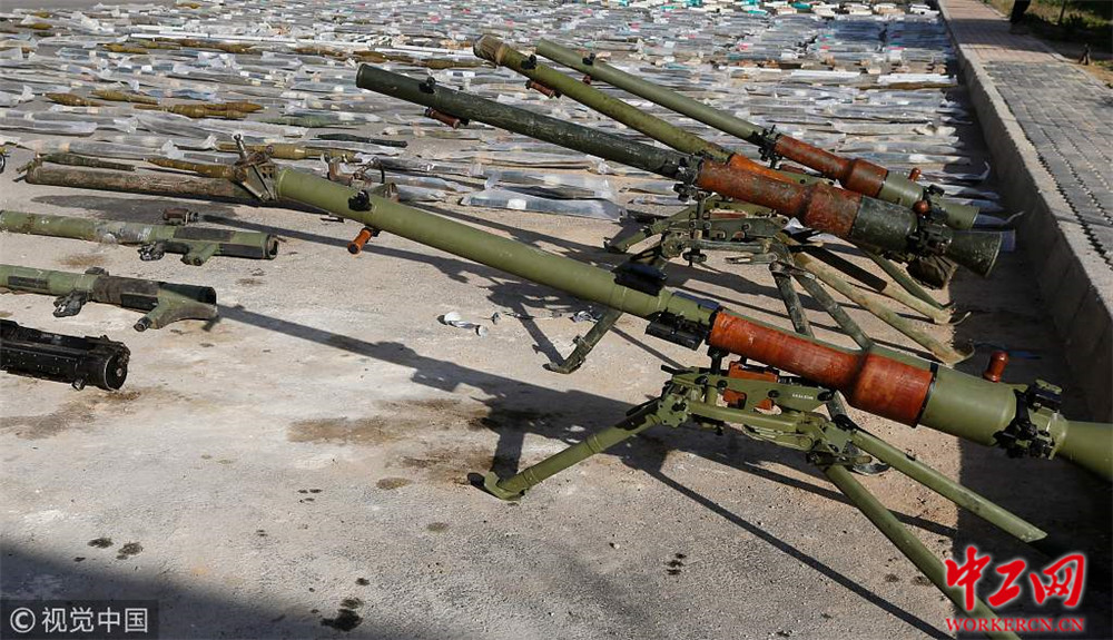 叙利亚政府军展示缴获武器装备 密密麻麻堪称壮观