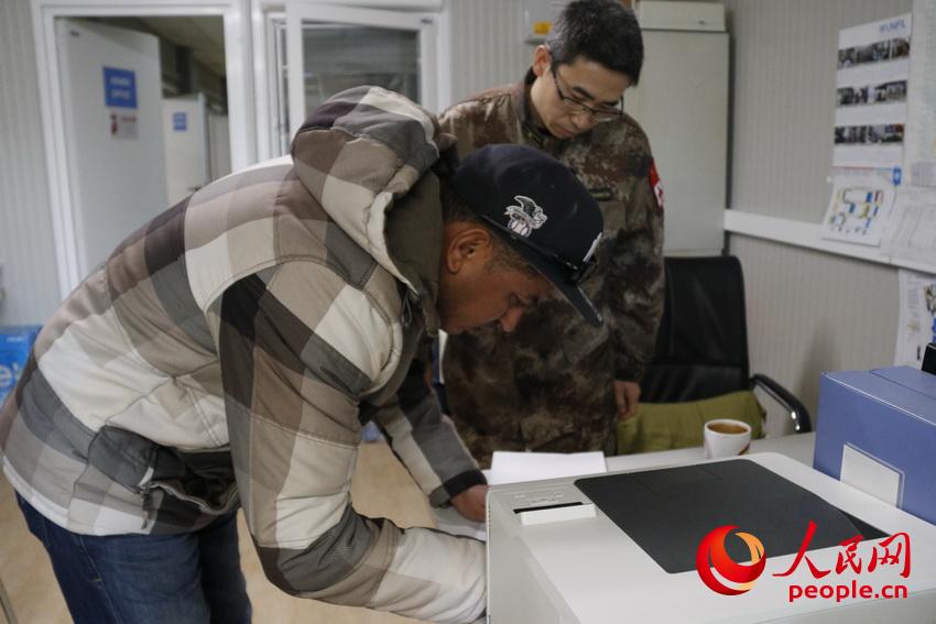 装备核查组人员对维和部队通信器材进行核查(李小荣摄)