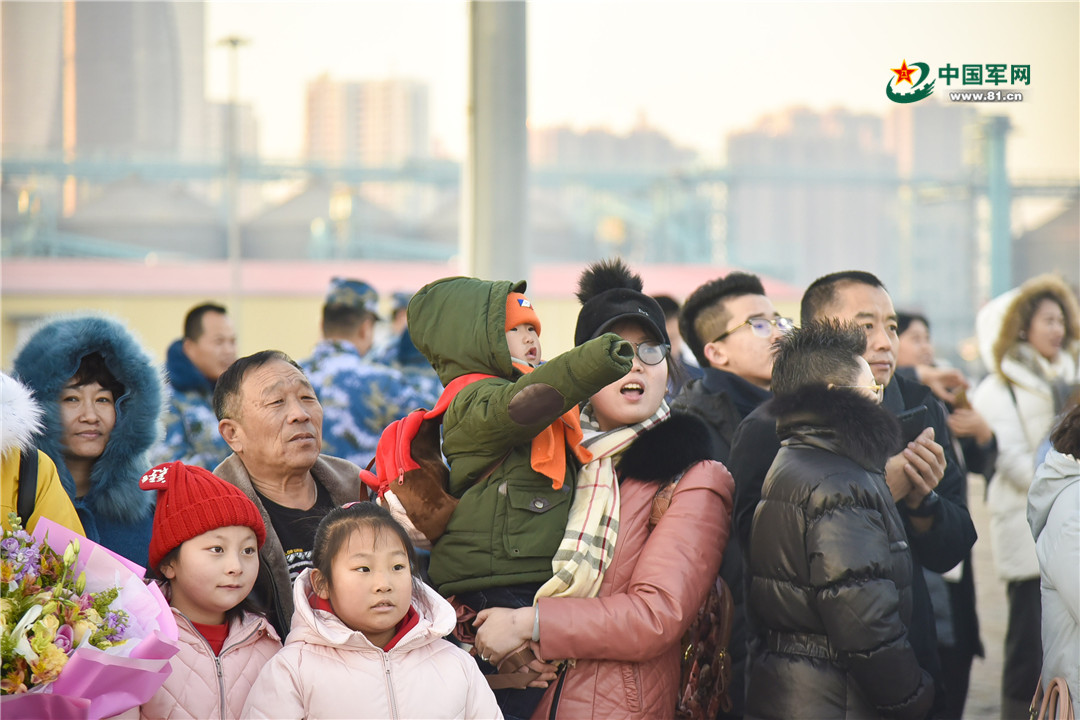 中国海军第三十批护航编队凯旋,家属在码头等待。