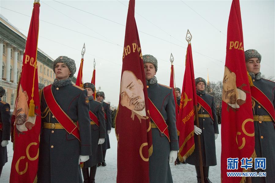 1月27日,士兵在俄罗斯圣彼得堡冬宫前广场上参加阅兵。 新华社发(莫京娜摄)