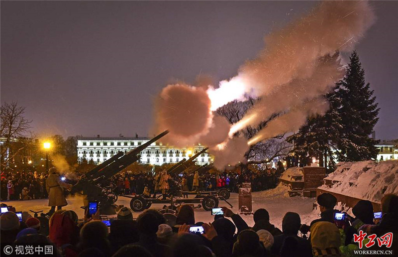 当地时间2019年1月27日,俄罗斯圣彼得堡,当地燃放烟花礼炮,纪念列宁格勒保卫战胜利75周年。二战期间,从1941年9月到1944年1月,纳粹德国军队全面围堵列宁格勒市近900天。其间,列宁格勒市内约65万人冻饿而死,另有约2.1万人死于德军轰炸。全市超过3000座建筑被彻底炸毁,7000多座建筑遭到破坏。而经过列宁格勒军民的顽强抵抗,最终围困于1944年1月27号被完全解除,赢得了最后的胜利。