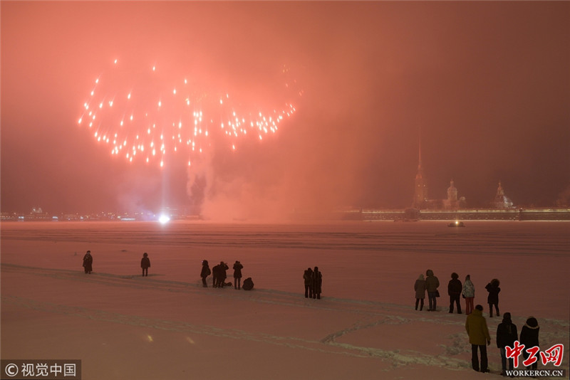当地时间2019年1月27日,俄罗斯圣彼得堡,当地燃放烟花礼炮,纪念列宁格勒保卫战胜利75周年。二战期间,从1941年9月到1944年1月,纳粹德国军队全面围堵列宁格勒市近900天。其间,列宁格勒市内约65万人冻饿而死,另有约2.1万人死于德军轰炸。全市超过3000座建筑被彻底炸毁,7000多座建筑遭到破坏。而经过列宁格勒军民的顽强抵抗,最终围困于1944年1月27号被完全解除,赢得了最后的胜利。