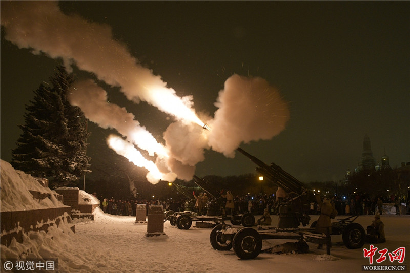 当地时间2019年1月27日,俄罗斯圣彼得堡,当地燃放烟花礼炮,纪念列宁格勒保卫战胜利75周年。二战期间,从1941年9月到1944年1月,纳粹德国军队全面围堵列宁格勒市近900天。其间,列宁格勒市内约65万人冻饿而死,另有约2.1万人死于德军轰炸。全市超过3000座建筑被彻底炸毁,7000多座建筑遭到破坏。而经过列宁格勒军民的顽强抵抗,最终围困于1944年1月27号被完全解除,赢得了最后的胜利。