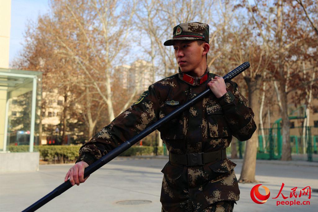 情况处置考核中,新兵使用手中警械进行抗击演示。