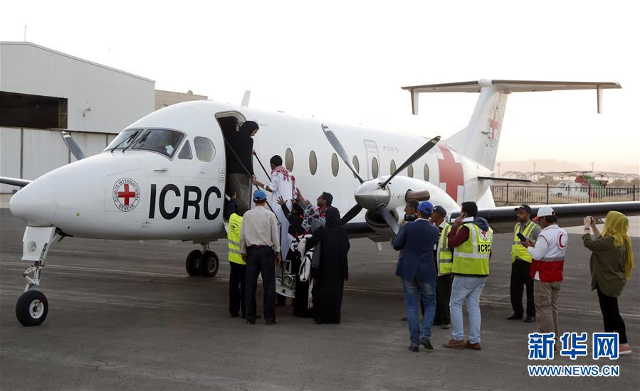 1月29日,在也门萨那机场,被释放的沙特阿拉伯籍战俘登上飞机。 新华社发(穆罕默德摄)
