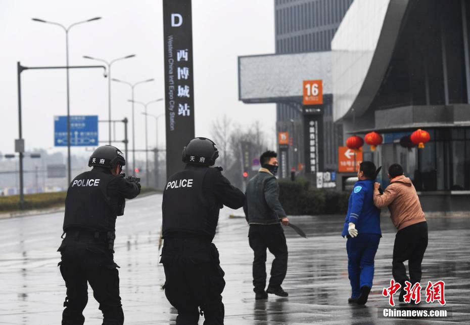 成都警方举行街面突发事件处置实战演练