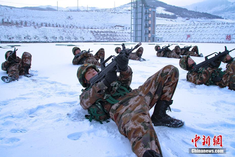 1月底,武警甘肃总队甘南支队特战分队在零下23℃寒冬天气集训。该支队以甘南高原独特天候为契机,精心组织端黑窝子、高层楼房反劫持、山地武装奔袭等18项课目训练,在严格训练中培养特战队员,锻造陇原高原特战利剑队伍。图为武警在雪地开展战术训练。张颖 摄