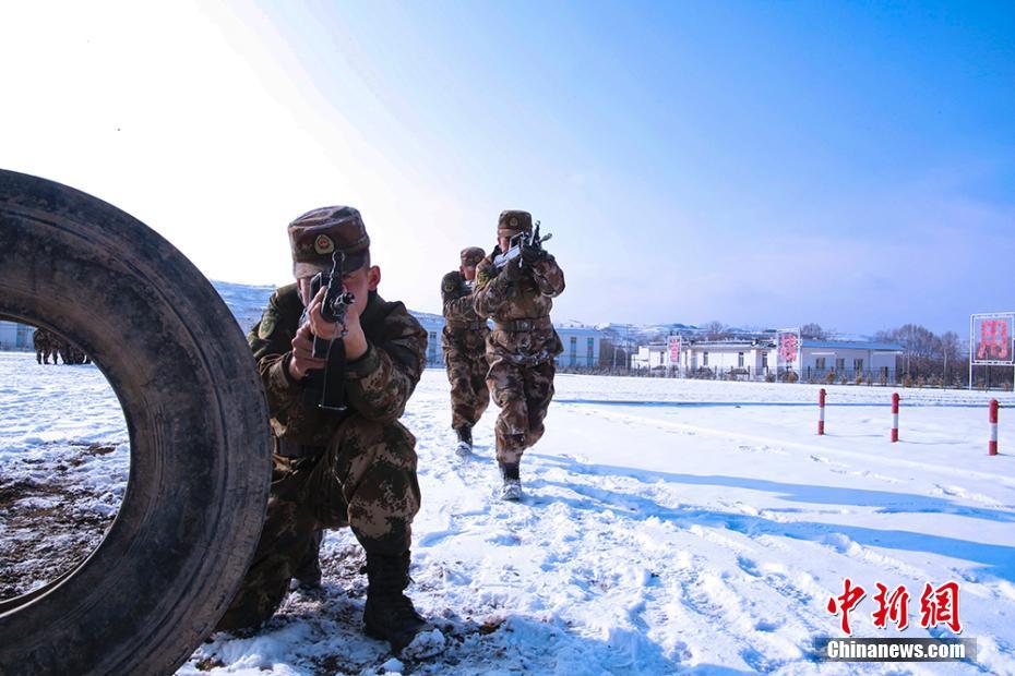 1月底,武警甘肃总队甘南支队特战分队在零下23℃寒冬天气集训。该支队以甘南高原独特天候为契机,精心组织端黑窝子、高层楼房反劫持、山地武装奔袭等18项课目训练,在严格训练中培养特战队员,锻造陇原高原特战利剑队伍。图为火力掩护,官兵快速通过。张颖 摄