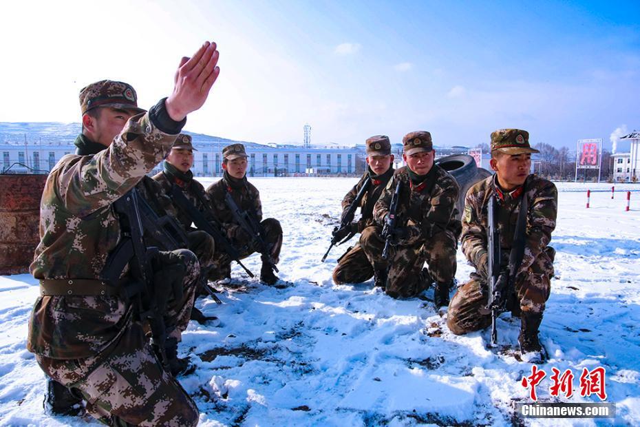 1月底,武警甘肃总队甘南支队特战分队在零下23℃寒冬天气集训。该支队以甘南高原独特天候为契机,精心组织端黑窝子、高层楼房反劫持、山地武装奔袭等18项课目训练,在严格训练中培养特战队员,锻造陇原高原特战利剑队伍。图为武警官兵灵活研判战法。张颖 摄