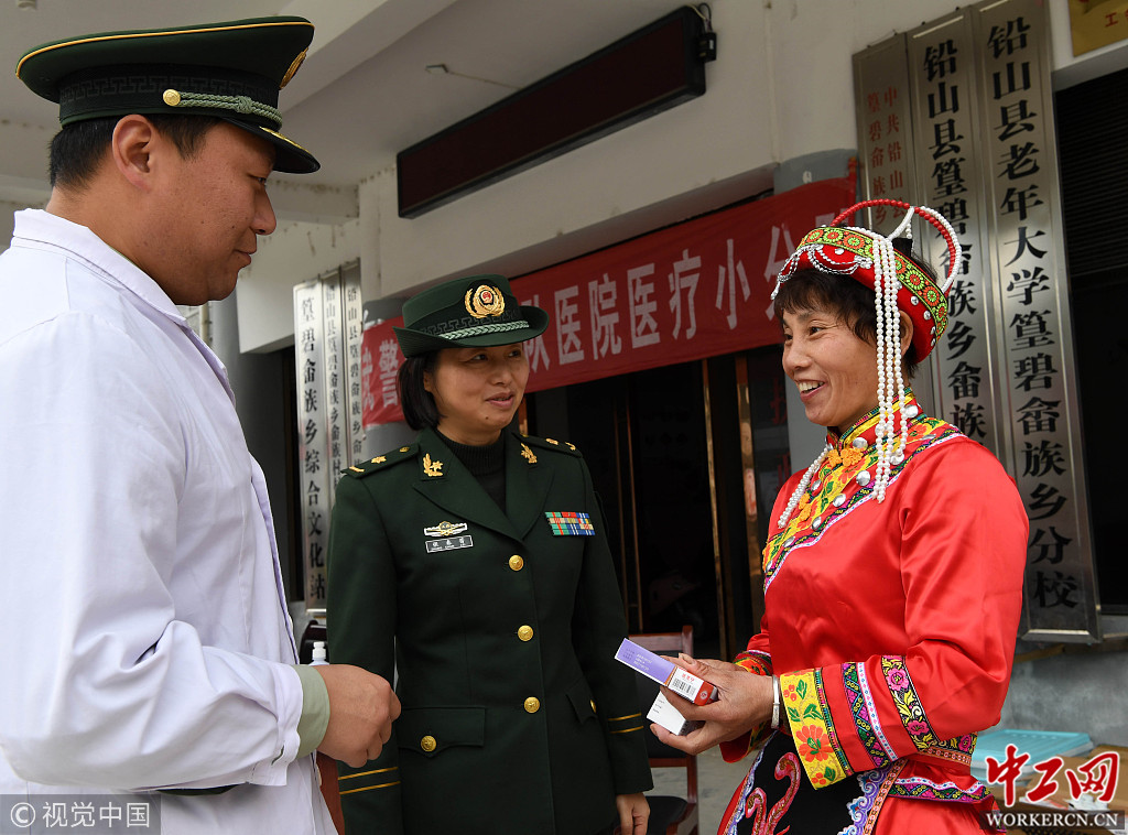 2019年1月29日,江西上饶,武警江西总队医院医疗队员为铅山县畲族乡群众开展义诊活动。