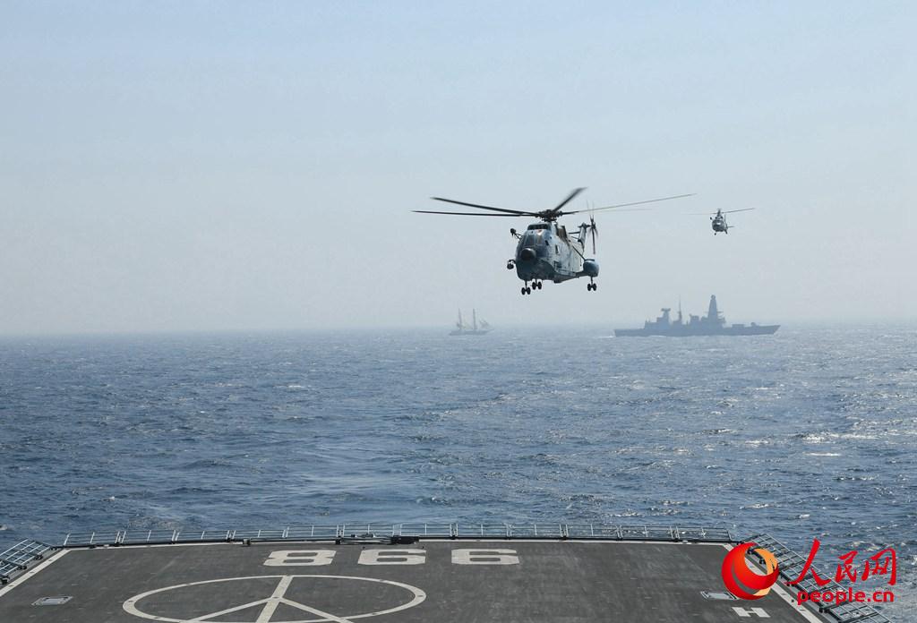 中国海军舰艇昆仑山舰直升机归舰 薛成清摄