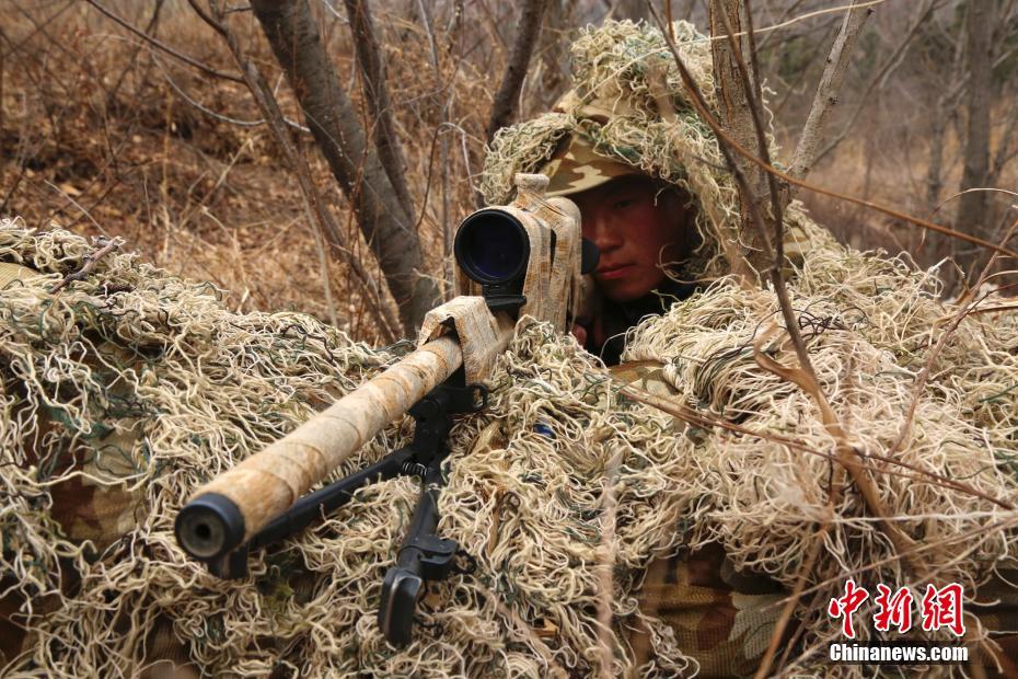 近日,海军陆战队某旅新年度狙击手集训圆满收官。据悉,此次集训区分学员层次科学编组,按照基础技能、专业技能、战术训练、综合演练等阶段施训,着重对伪装与潜行、狩猎指令射击、战术狙击与反狙击等10余个科目20余项重点内容进行强化训练。图为隐蔽“狙杀”。中新社发 尚文斌 摄