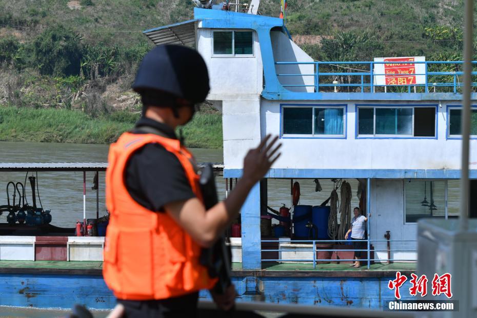 2月19日,执法人员向经过的船只挥手。当日,第79次中老缅泰湄公河联合巡逻执法勤务在云南省西双版纳州关累港启动,四国执法部门派出100余名执法队员参与此次行动。此次联合巡逻执法编队将在中国关累至老缅泰交界的金三角水域开展为期4天的执法行动。中新社记者 任东 摄