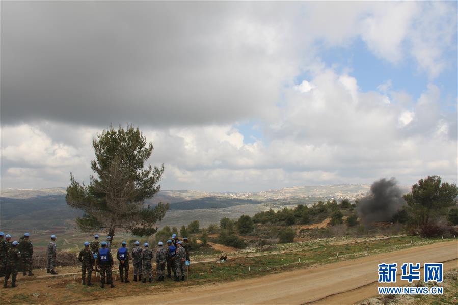 2月19日,在黎巴嫩以色列边境“蓝线”附近一处雷场,中方组织地雷销毁实爆作业观摩。 当天,柬埔寨赴黎维和部队指挥长萨雷上校等10人来到中国维和部队营区,双方围绕执行维和任务、部队建设、应急防卫、安全高效扫雷等进行交流。随后,双方赴黎以边境“蓝线”附近一处雷场实地研讨。 新华社发(尹博 摄)