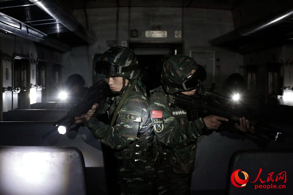 列车。夜间,车厢里光线微弱,特战队员需要深度的信任和默契,把彼此的后背交给战友。