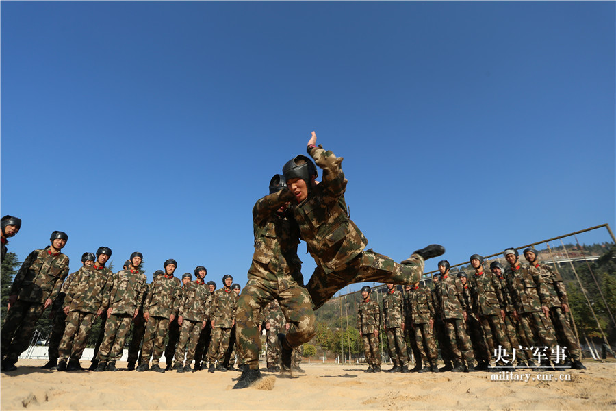 官兵进行擒敌对抗训练。胡程摄