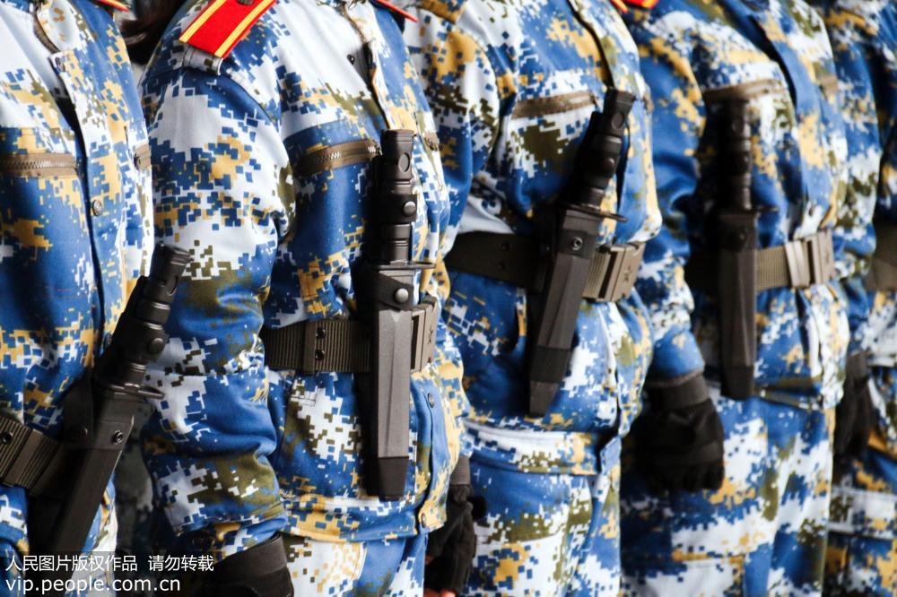 2019年3月2日上午,浙江工商大学杭州商学院桐庐校区内,近70名大一女生在练习匕首操。今年,该校首次在为期十三天的军训中引入“女子匕首操”,丰富学生军训内容,培养学生战斗作风与尚武精神。徐军勇/人民图片